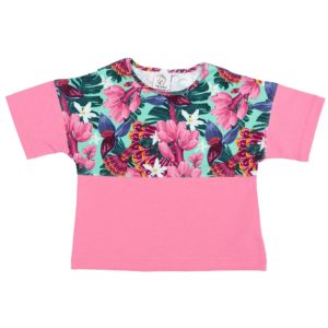 Dear Sophie crop t-shirt met vogel print voor meisjes in de kleur roze. Het t-shirt heeft een ronde hals en gepofte mouwen. Een echte zomerhit!